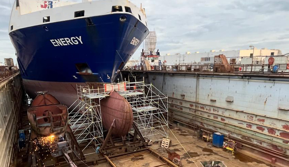 For the {Vessel – 750’ class with retrofit}, this has resulted in a concrete and impactful improvement project. Through modifications to the bow thruster and propeller blades, we achieve a CO₂ reduction of at least 20%.